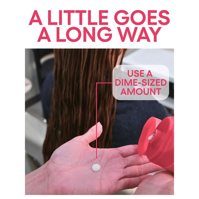 • Apply a small amount to damp hair, either at the bowl, chair, or after conditioning (for best results, use a silicone-free conditioner). Start with a nickel-sized portion and work through from roots to tips, focusing on mid-shaft to ends.