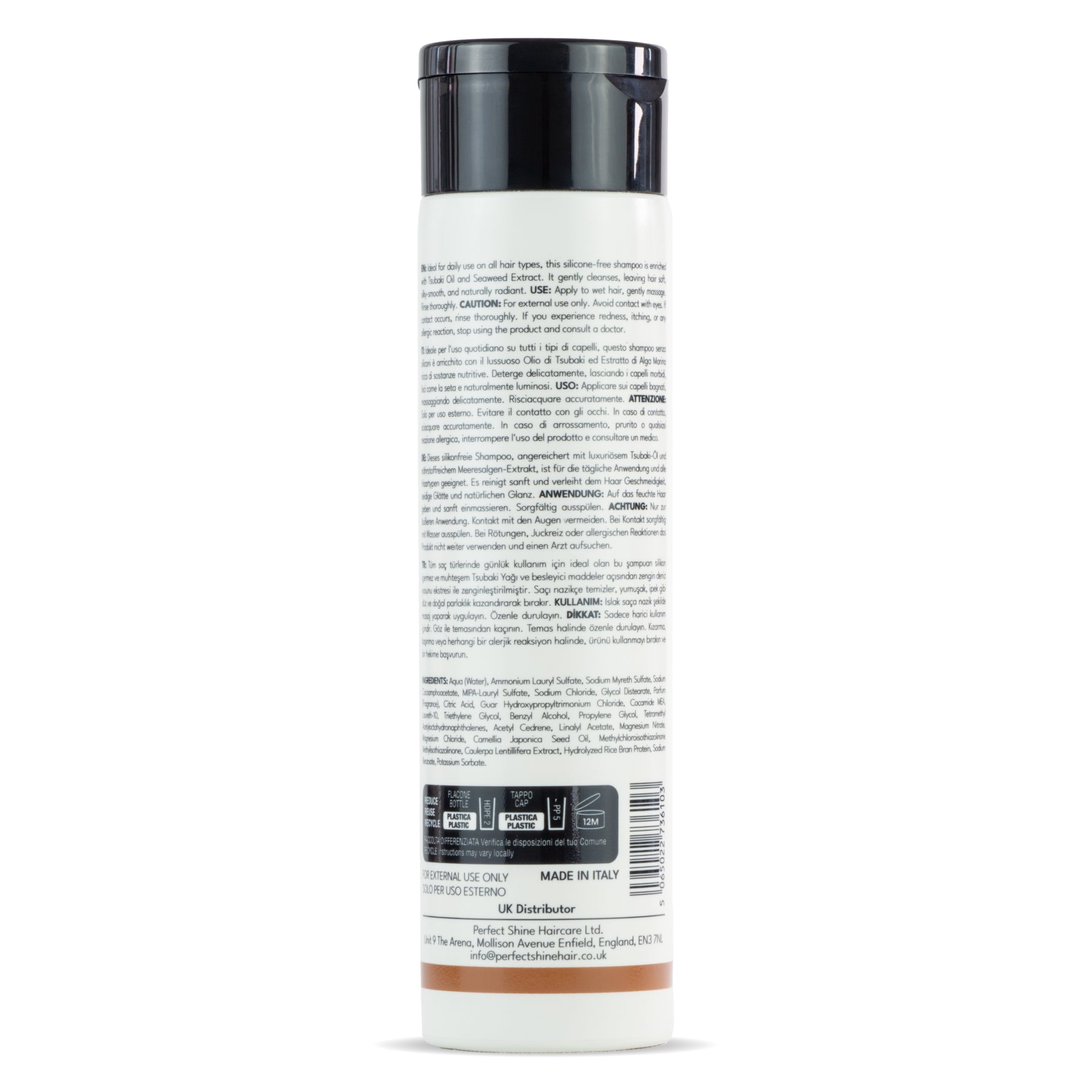 Designed for daily use on all hair types, this silicone-free shampoo blends Tsubaki Oil and Seaweed Extract to effectively cleanse hair. It improves softness, provides a smooth finish, and supports a natural, radiant shine.